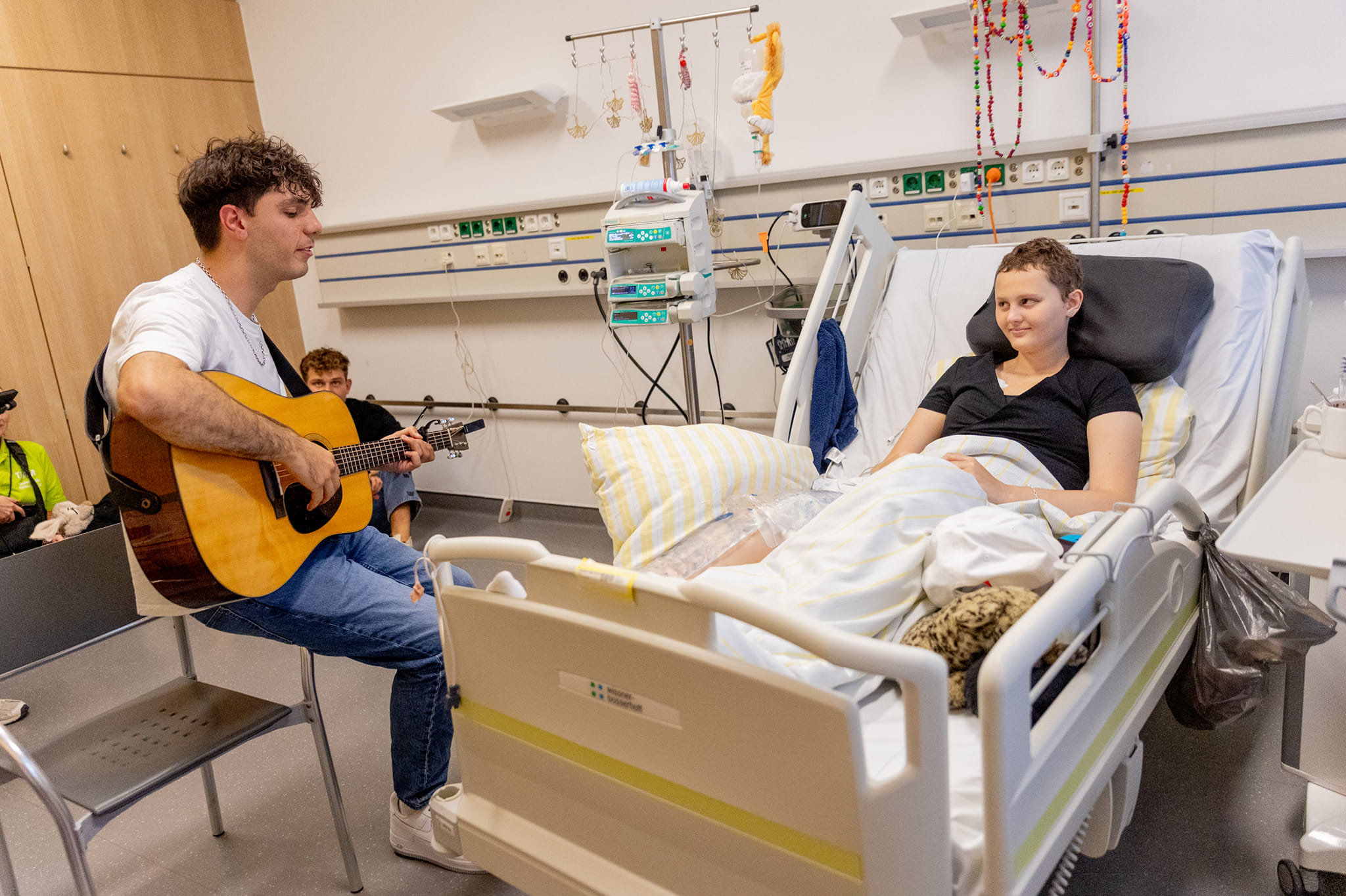 Sehr berührt hat alle die Geschichte eines Jungen, der schon seit einem Jahr in der Klinik ist und nicht wusste, ob er überhaupt „Bock“ auf ein Kinderklinikkonzert hat, sich am Ende des Tages mit dem Bett von der Intensivstation in das Atrium schieben ließ, um gleich zwei Konzerte zu erleben.