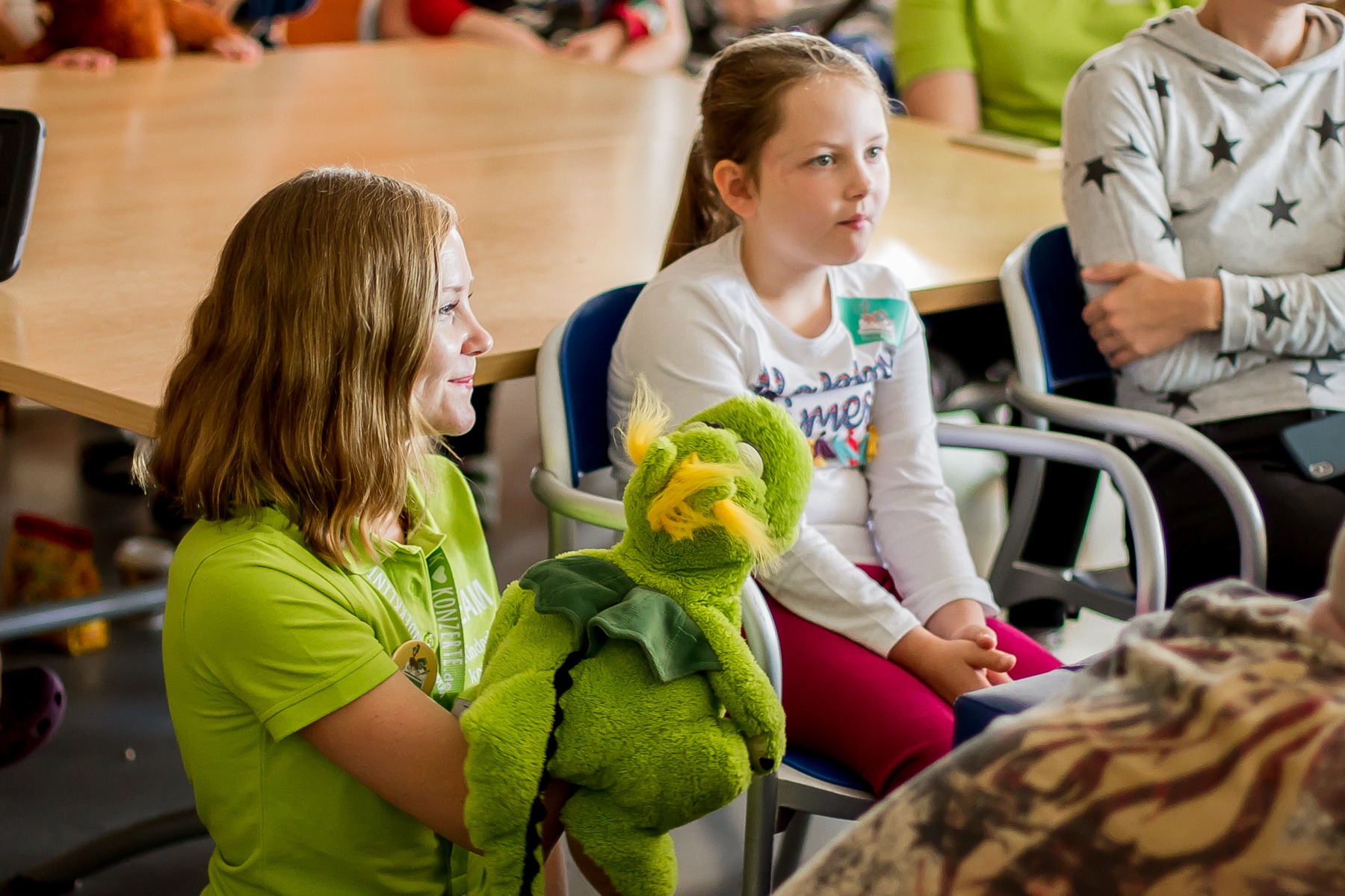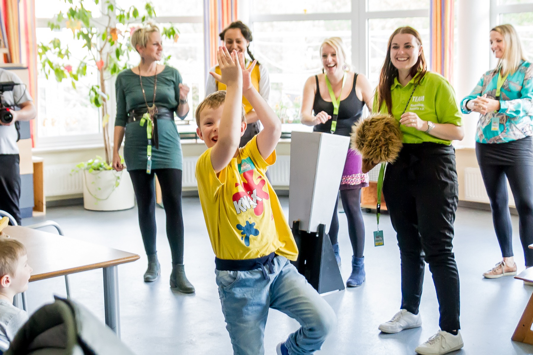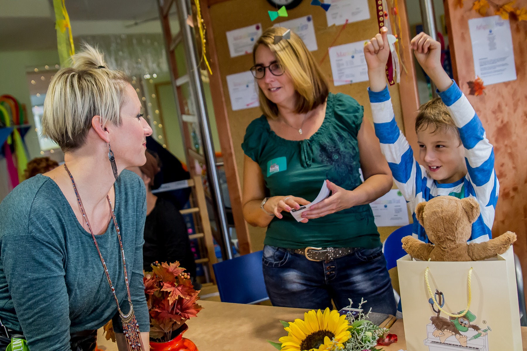 Schon bald kamen auch die Künstlerinnen des Tages. Unsere Vereinspatinnen, die A-cappella-Band „medlz“, spielten das 21. und ihr 8. Kinderklinikkonzert. Nicht nur deswegen war die Stimmung von Anfang an vertraut und entspannt. Die „medlz“ kannten die Abläufe und waren mit dem Konzept mehr als vertraut. Insgesamt sollten an diesem Tag 5 verschiedene Stationen besucht werden. Die Liederauswahl reichte von bekannten Kinderliedern, über deutsche Popmusik bis hin zu englischsprachigen Klassikern. An diesem Konzerttag konnte man sehr gut erkennen, dass auch nach vielen gemeinsamen Konzerten, keine Normalität einkehrt. Jedes Konzert ist besonders und durch die kleinen Zuhörer ganz individuell. Ob bei den einzelnen Teammitgliedern, als auch seitens der Band, waren die Emotionen von der ersten Station an deutlich spürbar. Die kleinen Patienten, ihre Eltern und Geschwister waren begeistert von der Musik, die so ganz ohne Instrumente gemacht werden konnte. Es wurde freudig getanzt, gelacht und geklatscht. Die kleine Auszeit ist gelungen. Einmal abschalten, ausbrechen aus dem Klinikalltag. Die Diagnose und deren Beschwerden mal für einen kurzen Moment vergessen. Zum Abschluss wurden natürlich auch diesmal wieder, die liebevoll gepackten Geschenktüten von uns überreicht. Das Leuchten in den Augen der Kinder, war nach der Ankündigung, nicht zu übersehen und sie konnten es kaum erwarten sie entgegenzunehmen. Nach jeder einzelnen Station, nahmen sich die „medlz“ Zeit für gemeinsame Erinnerungsfotos, Autogramme und Gespräche. Nicht nur die Kids und deren Angehörige, sondern auch das Klinikpersonal war begeistert.