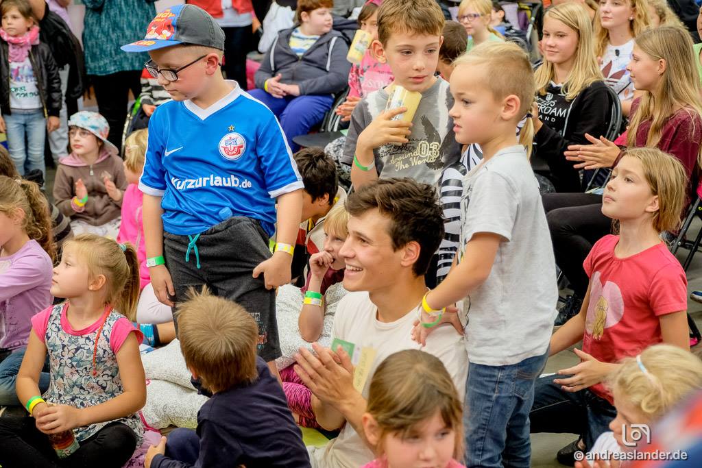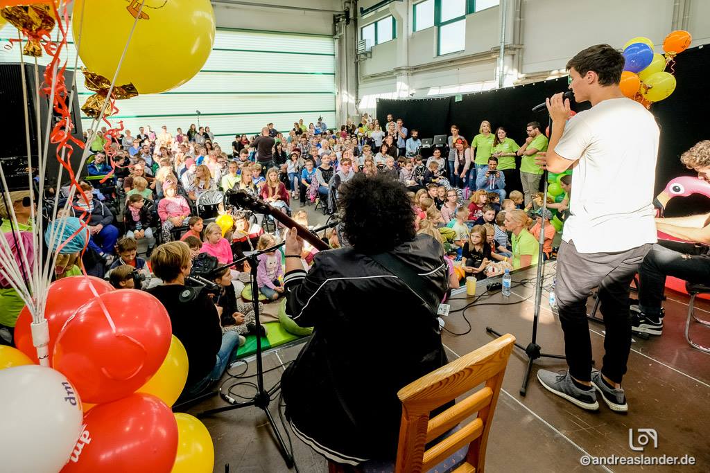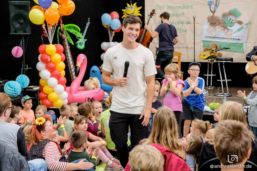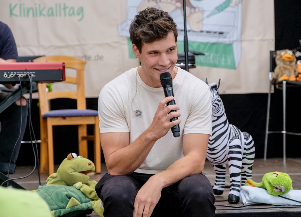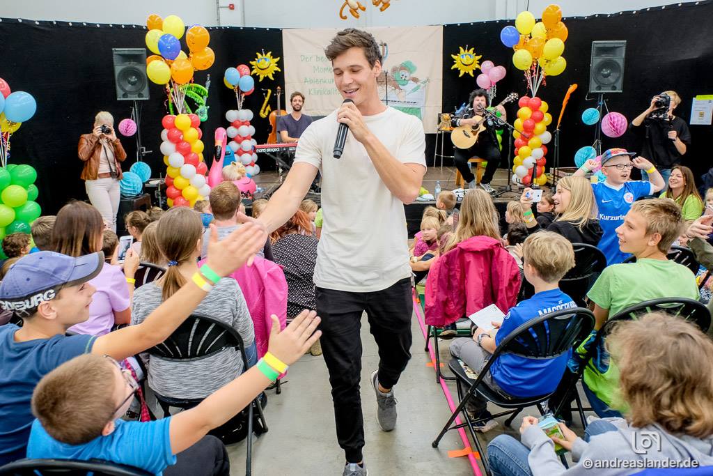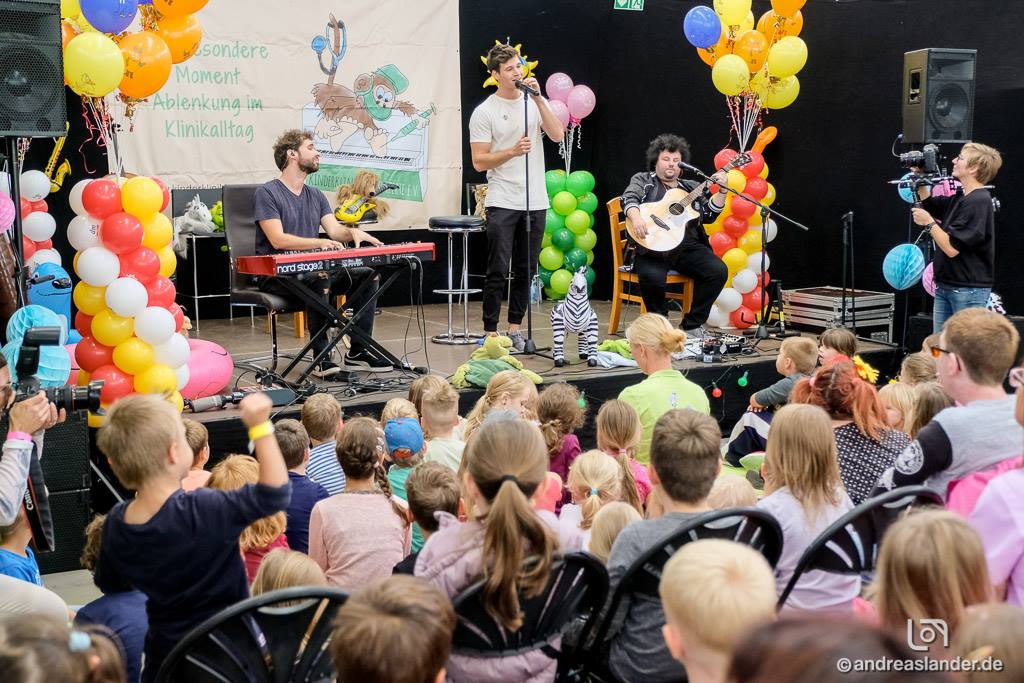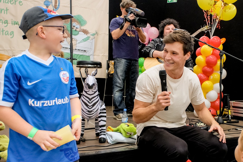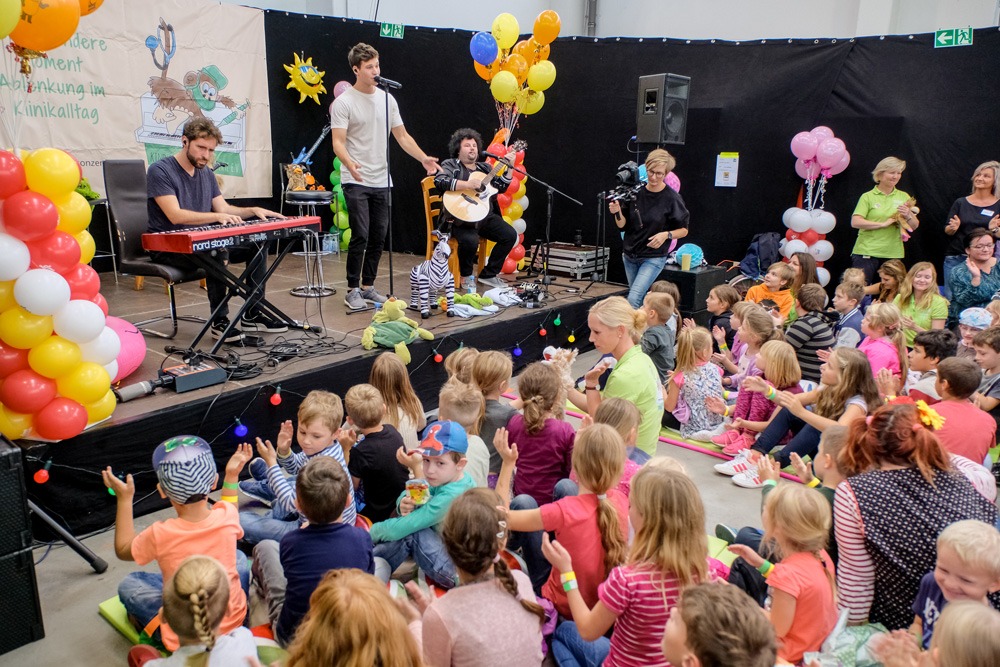 Umso größer die Überraschung, als Nicole und Nadja nach ihrer Anmoderation Wincent Weiss auf die Bühne riefen. Von da an gab es für die kleinen Patienten kein Halten mehr. Auf der Emotionspalette war alles vertreten, was man sich nur vorstellen kann. Die Gesichter der Kinder zeigten pure Freude, Erstaunen, aber auch Tränen, da sie so gerührt von diesem Augenblick waren. Denn alle im Raum kannten den Star natürlich aus Radio, Fernsehen und Internet. Doch die wenigsten hätten damit gerechnet, ihn tatsächlich mal live zu sehen. Denn viele der an diesem Tag anwesenden Kinder müssen entweder selbst gegen Erkrankungen kämpfen oder haben Geschwisterkinder, welche betroffen sind. Da ist es nur verständlich, dass ein Konzertbesuch nicht immer so leicht realisierbar ist. Umso größer die Freude über den heutigen Tag.