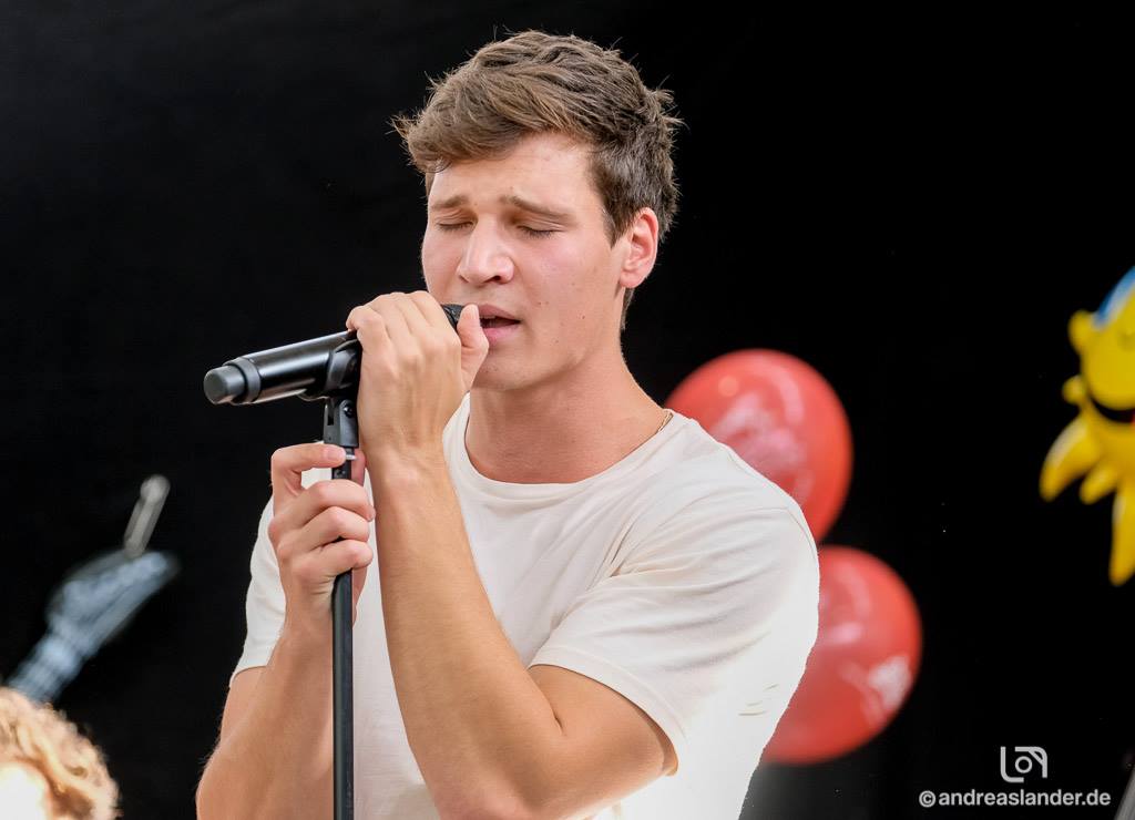 Bereits ab der ersten gesungenen Zeile wurde von den Kindern lautstark mitgesungen. Und das mit voller Inbrunst und Textsicherheit. Das rührte sogar die bühnenerfahrenen Musiker sichtlich. Ohne Berührungsangst ließ sich Wincent auf die kleinen Patienten ein und dies stets mit einem Lächeln im Gesicht und ganz nahbar. So trat er häufig von der Bühne, sang auf Augenhöhe mit den Kindern und setzte sich zu ihnen. Und das machte bei den Kids sichtlich Eindruck. Wann immer sie konnten, umarmten sie ihren Wincent und auch der ein oder andere Wangenkuss wurde verteilt. Das Resultat? Einfach zu beantworten. Wo man hinschaute, glückliche Kinder. Und die kleinen Patienten mussten auf keinen ihrer Lieblingssongs verzichten. Von „Musik sein“ bis „Feuerwerk“ war alles dabei, was ihre Herzen höher schlagen ließ. Selbst als sich eines der Kinder als Fan von Max Giesinger outete, zeigte sich Wincent flexibel und stimmte prompt „Wenn sie tanzt“ von seinem Musikerkollegen an.